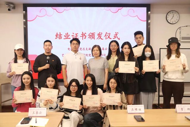电影学院党总支副书记王春云老师、艺术科技与管理学院党总支副书记薛嘉老师、电影学院曹烨老师为同学们寄语,并为他们颁发了结业证书。希望他们今后在党员发展的道路上能够继续通力合作,不忘初心使命,面向未来铺好新时代的文艺道路。