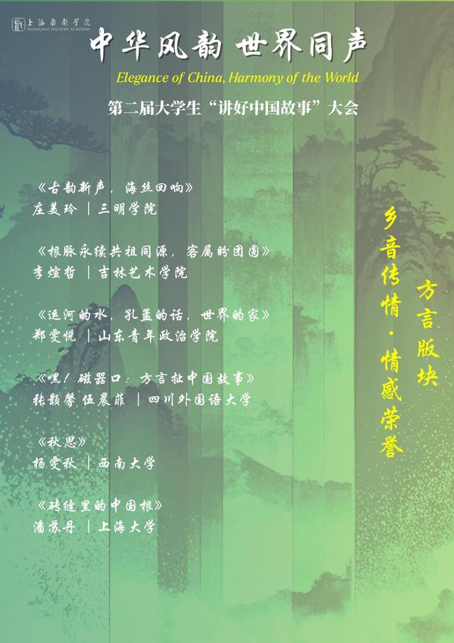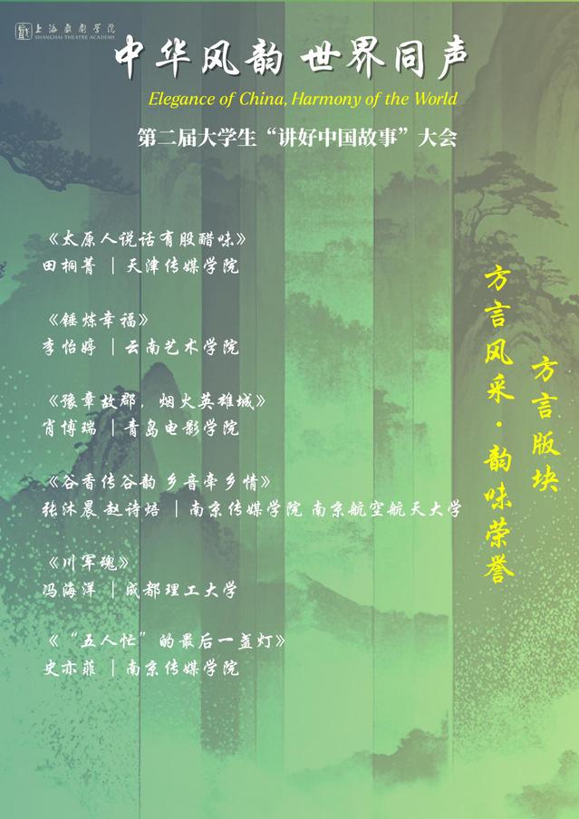 12月5日,第二届大学生“讲好中国故事”大会全国决选暨荣誉授予典礼在上海戏剧学院昌林路校区新剧场圆满举行。本次活动由上海戏剧学院、中国电视艺术家协会青少年教育专业委员会指导,上海戏剧学院电影学院主办,上海社会科学院俄罗斯中亚研究中心、上海大学海派文化研究中心协办,上海戏剧学院电影学院播音与主持艺术系承办,上海戏剧学院党委宣传部提供了特别支持。