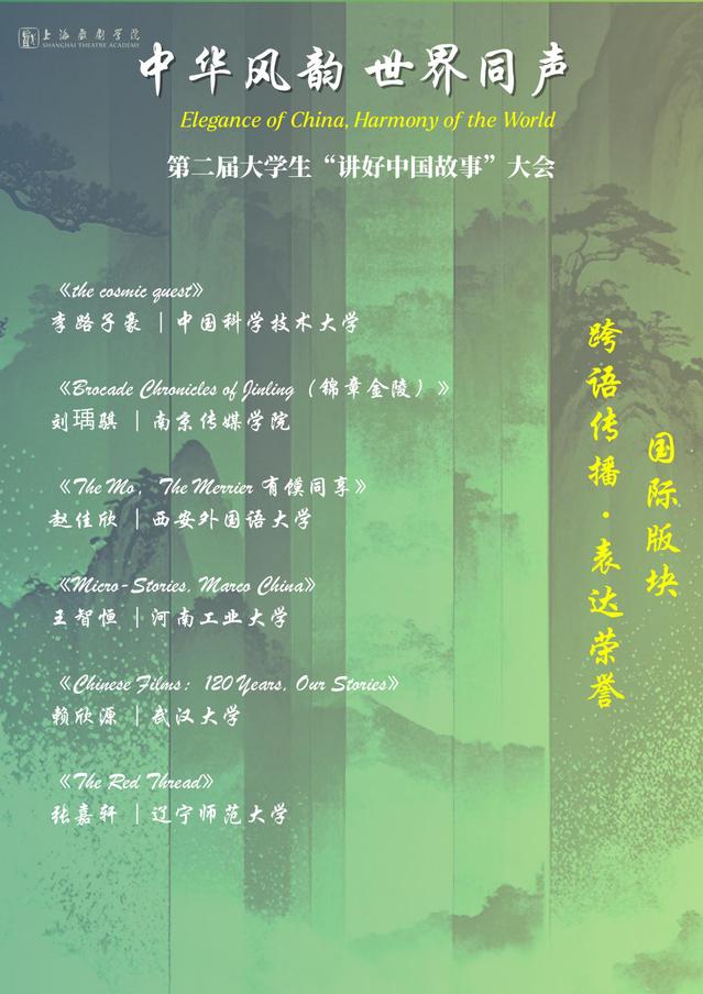 中华风韵·世界同声 第二届大学生“讲好中国故事”大会荣誉名单: