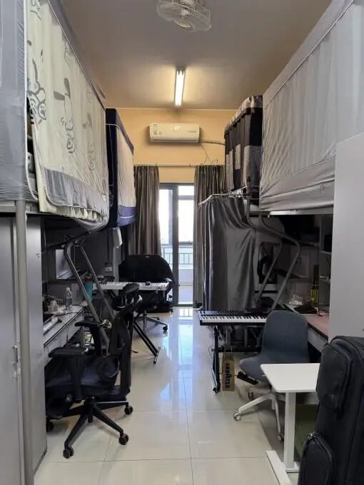这里没有过多的装饰,却有着最动人的声音。立在墙边的键盘、靠在床边的吉他、永远开着的音乐软件,构成了这个空间最真实的模样,各种练习声在此交织成最动人的青春交响乐。这里不只是一个睡觉的地方,更是梦想的排练厅。