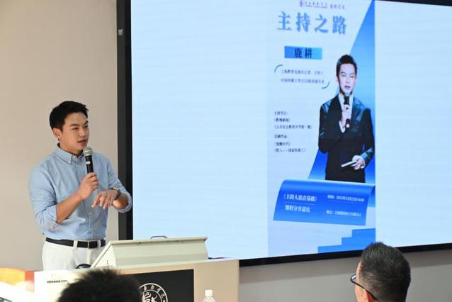 上海教育台记者、主持人鹿耕则以“从零开始的跨界成长”为题,分享了他从表演专业转型为记者与主持人的心路历程。他坦言,职业初期曾经历主持紧张、采访生疏等挑战,但正是这些实践中的挑战才促成了他的快速成长。他说:“现场应对能力是主持人的核心底气”,并以其参与突发新闻采访的亲身经历为例,说明实战对快速反应与执行力的锤炼。