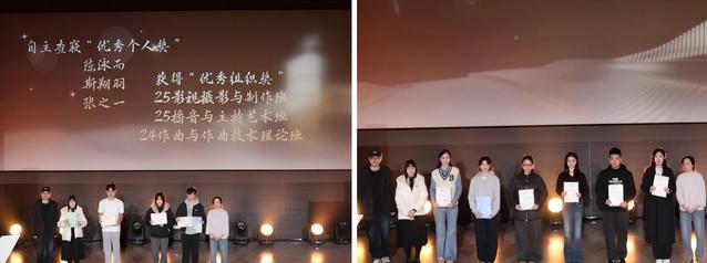 随后,大会表彰了在过去一学年中于品德、学业、服务等多方面表现突出的学子,电影学院副院长董健、党总支副书记王春云为校级个人评优及专业奖学金获得者颁发证书。一份份证书,是对过往勤勉的总结,更是对未来攀登的激励。
