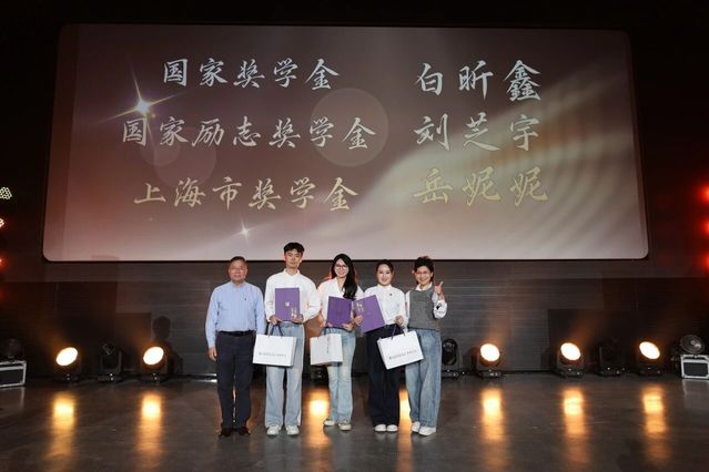 树立先进典型,发挥榜样示范作用。上海戏剧学院党委常委、宣传部部长、学工部部长、武装部部长李冬梅与电影学院院长厉震林共同为国家奖学金获得者白昕鑫、国家励志奖学金获得者刘芝宇、上海市奖学金获得者岳妮妮颁发荣誉证书。镜头定格下荣耀瞬间,掌声献给不懈的坚持与卓越的成就。