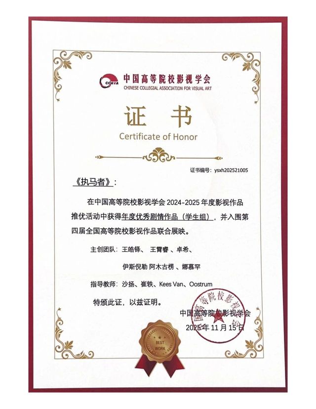 《执马者》主创团队:王皓铎、王霄睿、卓希、伊斯倪勒 阿木古楞、娜慕罕;指导教师:沙扬、崔轶、Kees Van Oostrum。