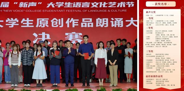 9月26日,由河北省教育厅主办,河北大学承办的第八届“新声”大学生语言文化艺术节全国大学生原创作品朗诵大赛落下帷幕。经过激烈角逐和专家评审,由上戏电影学院董健老师、包磊老师指导,24主持MFA王子安、23主持班江海慈演绎呈现的原创朗诵作品《沧浪一生》斩获全国一等奖,并赢得全场最高分摘得本届“新声”大奖。